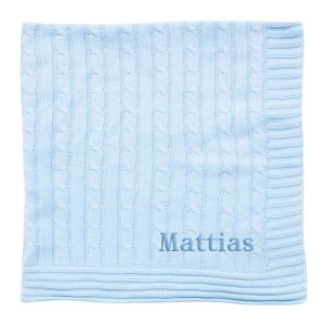 Personalized Blanket – Baby Blue Cable Knit