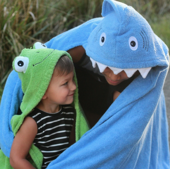 Your favorite shark towel is now in Adult size. Same as the kids but with a bathsheet on the bottom. (approx. 30″x64″) Just when you thought it was safe to go into the water………….it’s time to get out and dry off! Enlist help from the very top of the food chain to get your water bug on dry land. Our Shark is made of absorbent blue 100% cotton terry with an embroidered face and non-chompy teeth