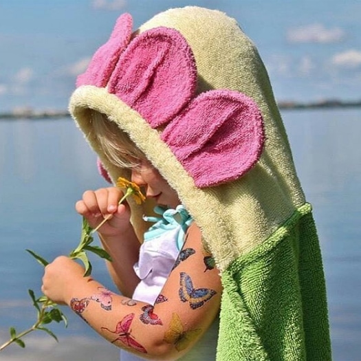 This royal towel is a real show stopper at the beach or pool! When she comes out of the bathtub fresh as a daisy and smelling like a rose, it’s a shame to dry off with a plain towel! Pamper the SweetPea in your life with the adorable and absorbent Fiona Flower. Made from delightfully soft pink, green and yellow terrycloth. Fiona Flower stands out from ordinary towels like a petunia in an onion patch.
