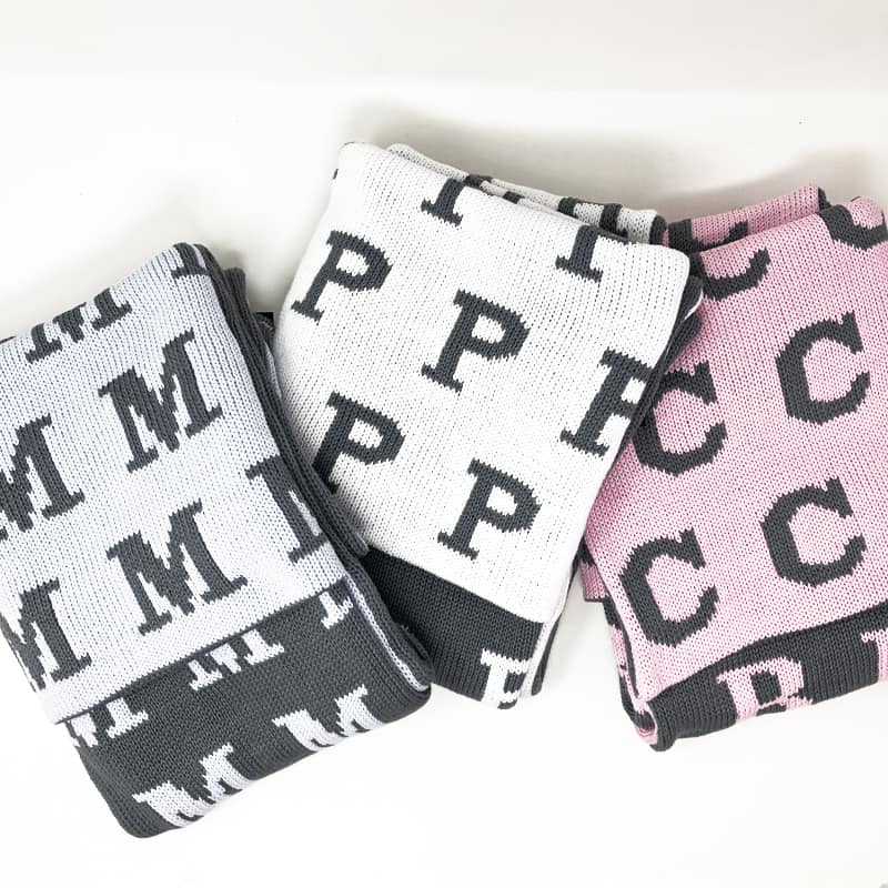 If there was ever a blanket to splurge on, this would be it! Hand knit from ultra-soft, thick 100% cotton, the reversible personalized baby blanket can be done in any color combination of your choice. The child’s name will be knit on the solid reverse side. Use it in the stroller, over a rocking chair, on the floor, or in the crib when the child is older: with any number of uses, this blanket will be treasured for years to come.