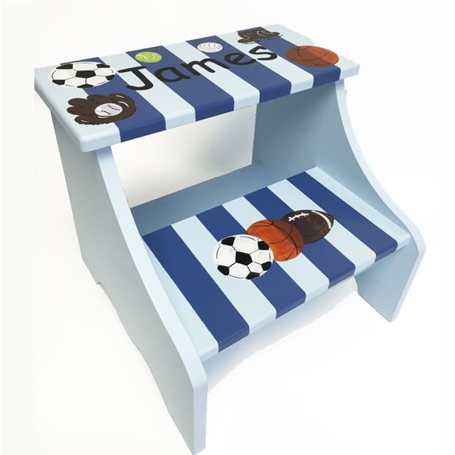 Each stool has been hand cut and hand painted just for you. Choose to have this design on a footstool or a stepstool. Proudly made in Canada! This fun and colourful stool is the perfect gift for any growing child and will last for years to come. Give your kids a bit of independence with a step up to reach for things just beyond their height. Whether it is a step up for the bathroom sink, toilet or to reach the top of their mattress. This is a personalized stool that they will use for years to come.
