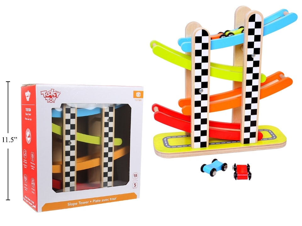 Total of 5 pieces: includes 4 mini racing cars, and a slope tower
